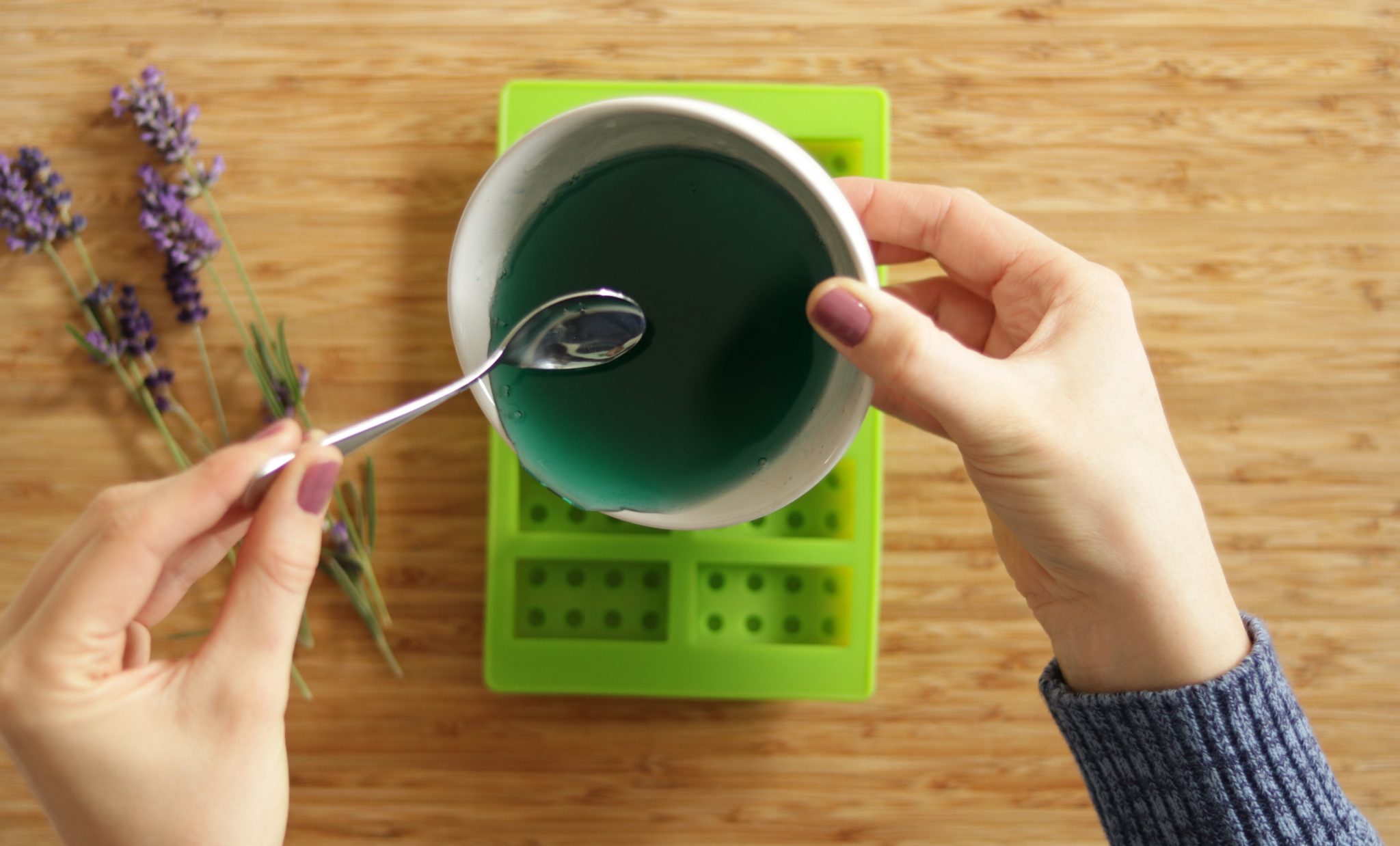 - Anschließend gibst die Seife vorsichtig in die Silikonform*.